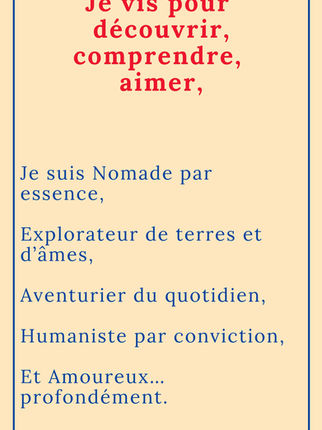 Les Océans ont toujours été ma passion, symbole de l’Aventure, de l’évasion, de la découverte de Terres lointaines et des rencontres inoubliables qui marquent une vie. Chaque voyage en mer est une nouvelle page d'histoires à écrire, où les vagues deviennent des mots et le vent, un narrateur complice. Des récifs de corail aux profondeurs mystérieuses, les Océans sont des livres ouverts, riches en couleurs et en secrets qui n'attendent qu'à être explorés. Les marins, tels des poètes des flots, partagent ces récits, tissés de légendes et de vérités...
